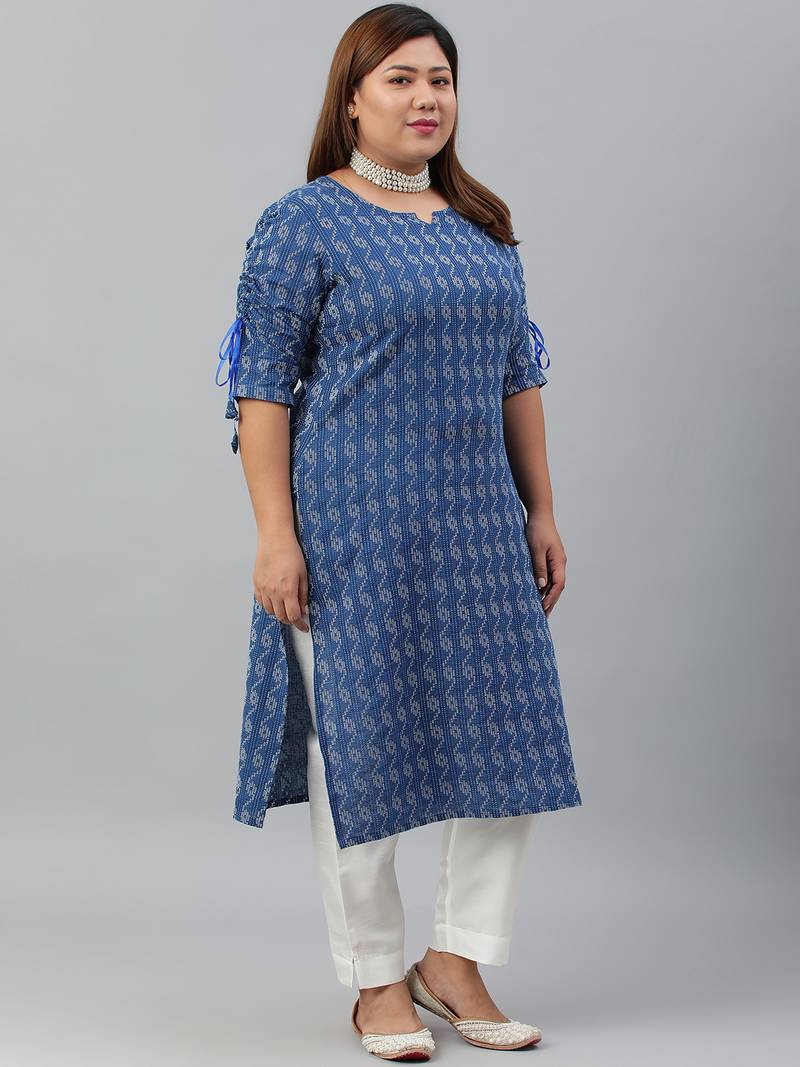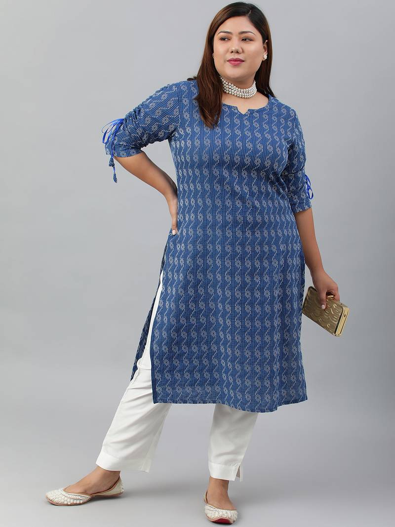 | Product Description | This Stylish Woven Design Kurta From Xl Love By Janasya Is Made Of Pure Cotton And Comes In An Attractive Blue Color. It Features 3/4 Sleeve,Round Neck,Straight And It Is Calf Length Kurta With Tie Up Detail At Sleeve That Is Suitable For Casual Occasions. Team It With Matching Leggings For A Chic Look. |