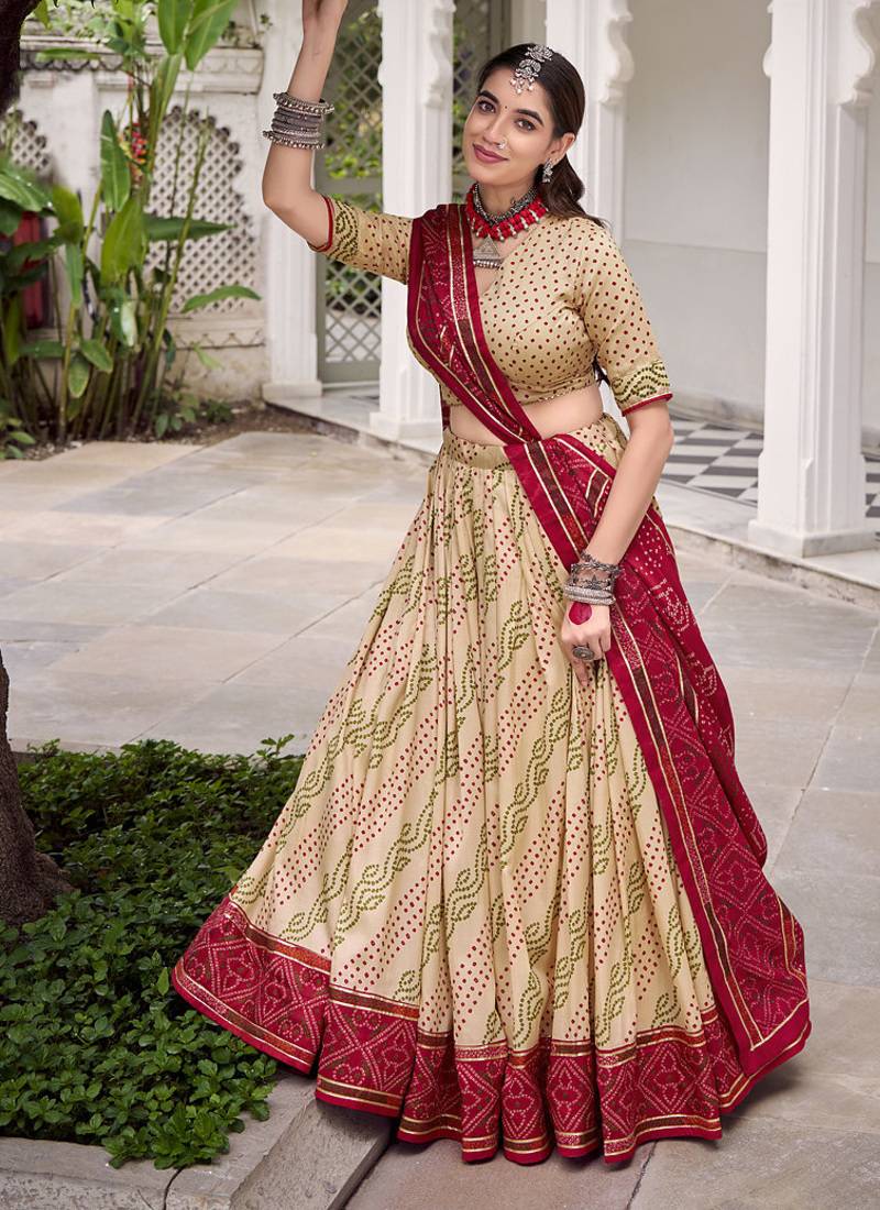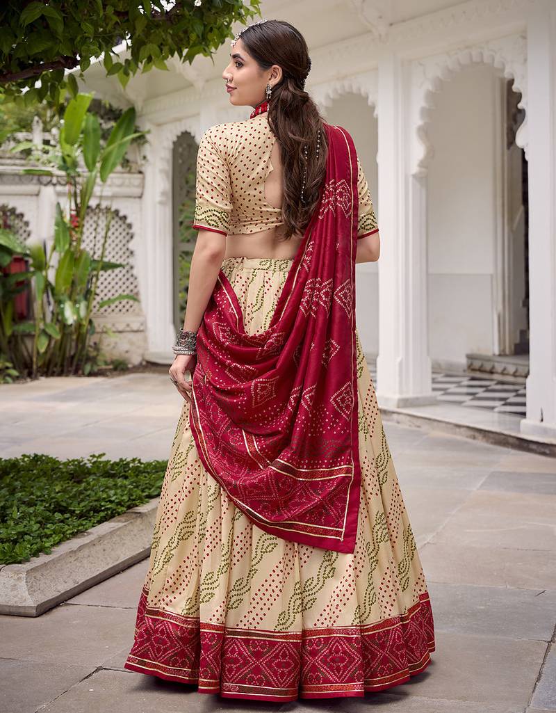 | Product Name | Bandhej Print Tasar Silk Lehenga Choli With Gotta Patti Touch Up | |