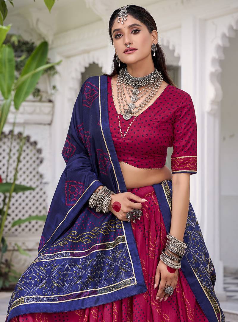 Bandhej print tasar silk lehenga choli with gotta patti touch up