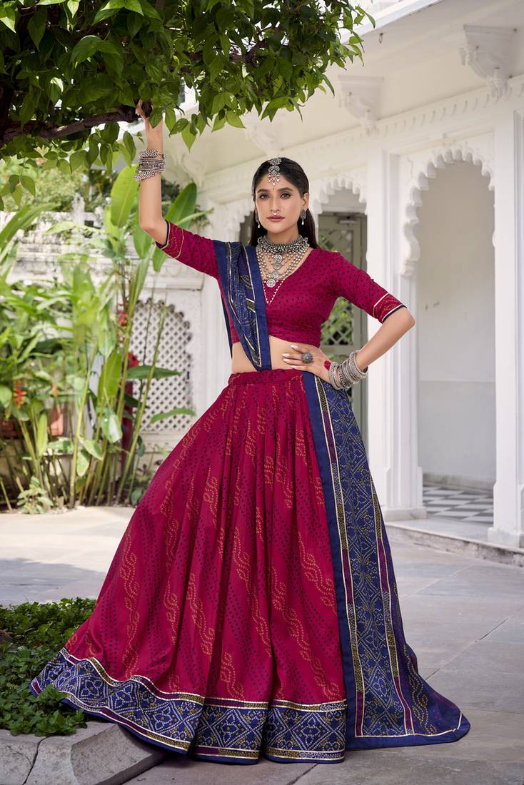 | Product Name | Bandhej Print Tasar Silk Lehenga Choli With Gotta Patti Touch Up | |