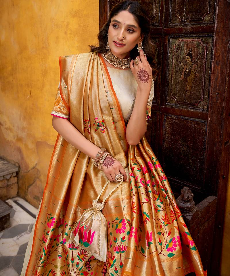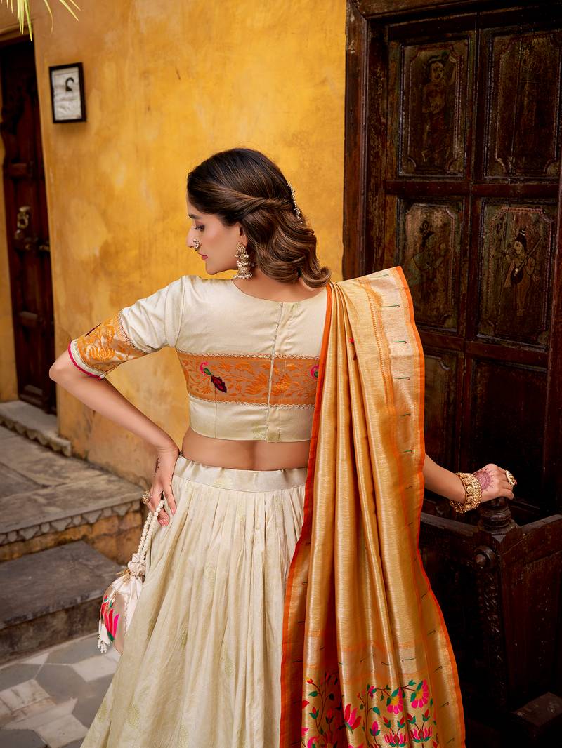 Off white paithani silk chaniya choli with zari work