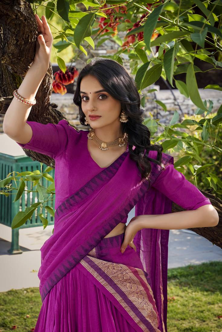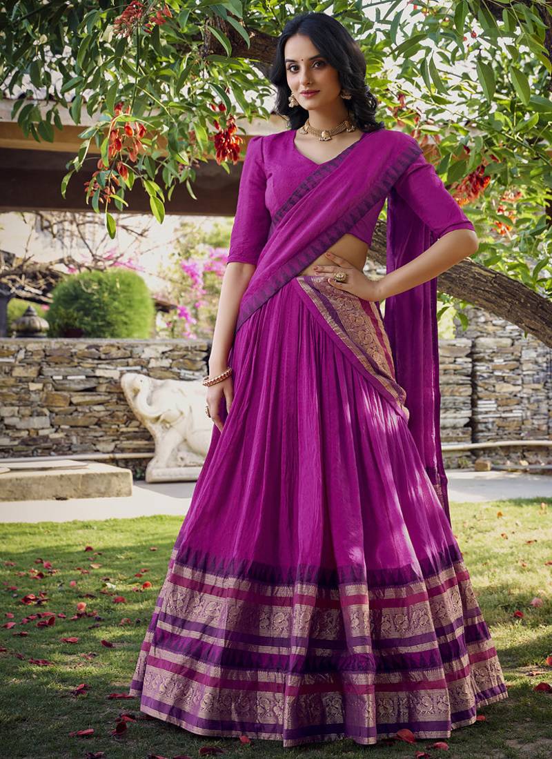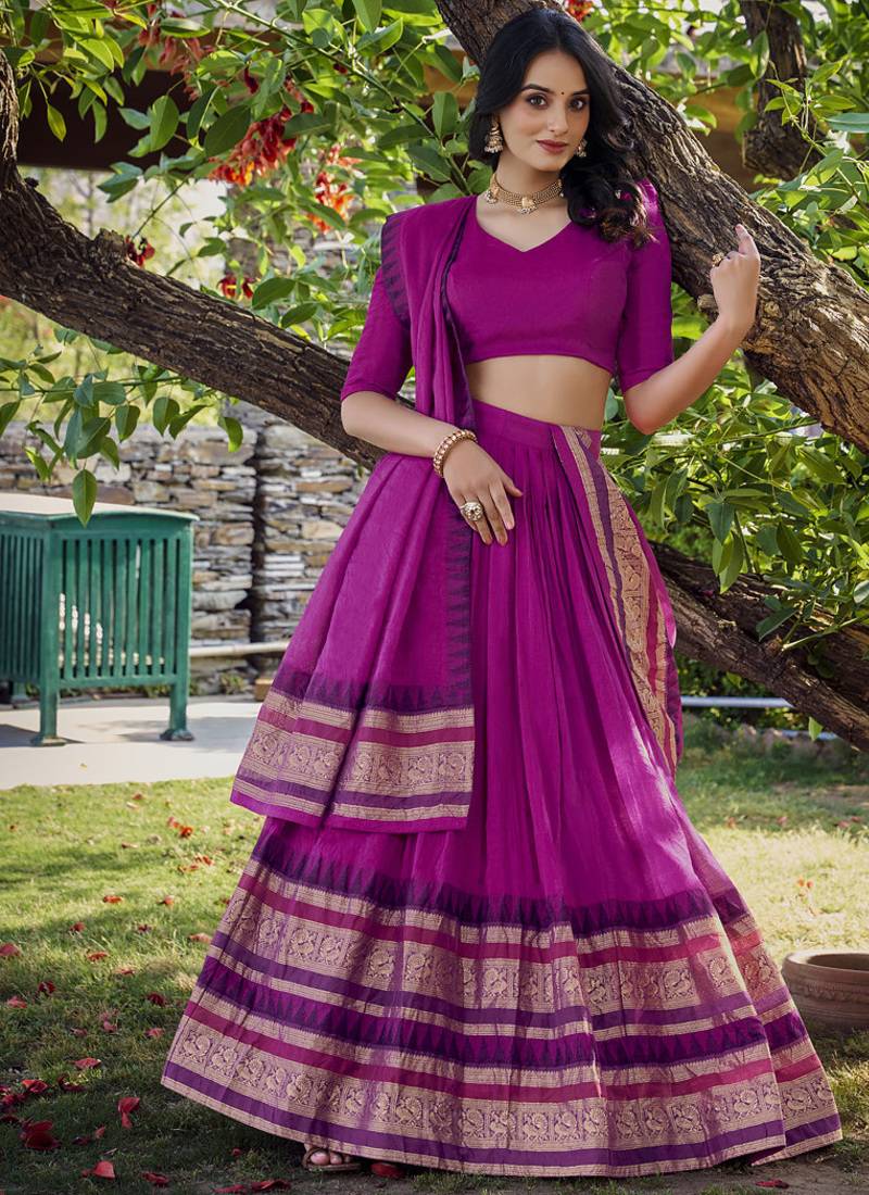 Raani pink chanderi plain chaniya choli with rich zari weaving