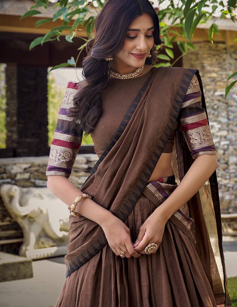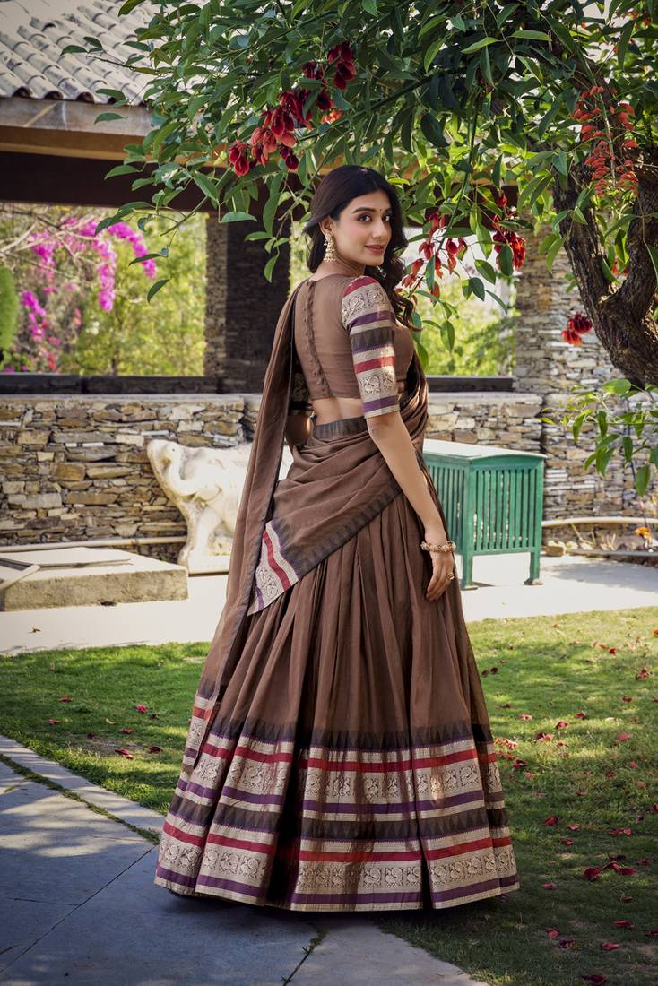 | Product Name | Brown Chanderi Plain Chaniya Choli With Rich Zari Weaving | |