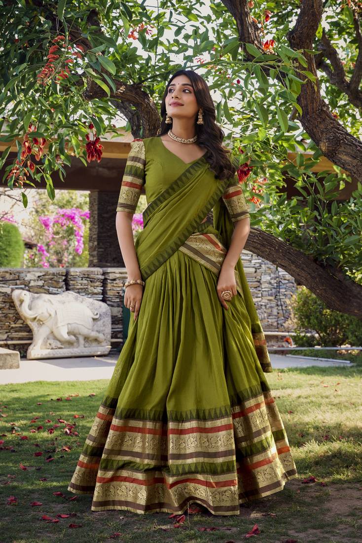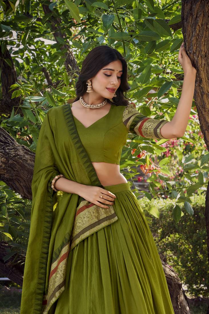 | Product Name | Green Chanderi Plain Chaniya Choli With Rich Zari Weaving | |