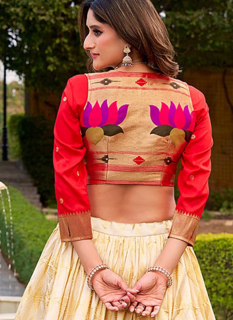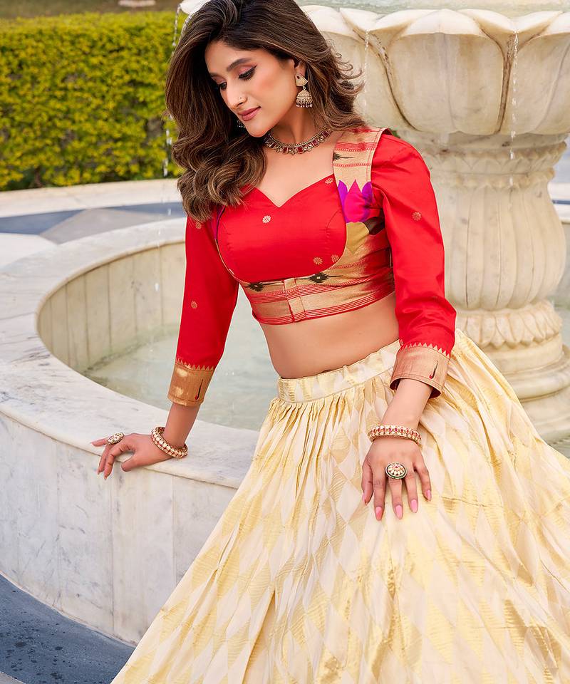 Jacquard silk chaniya choli with zari weaving & lace touch-up