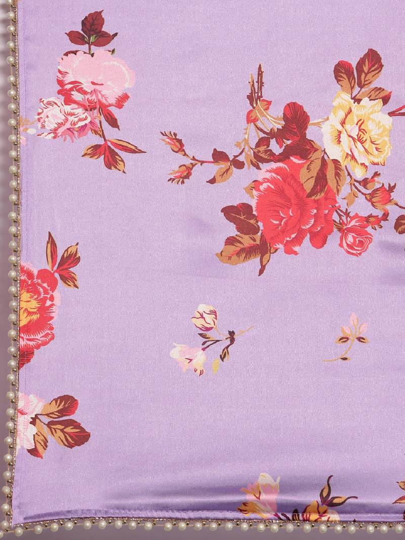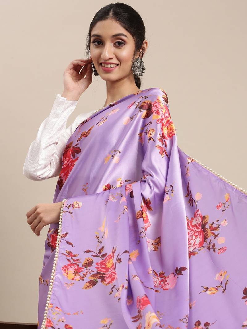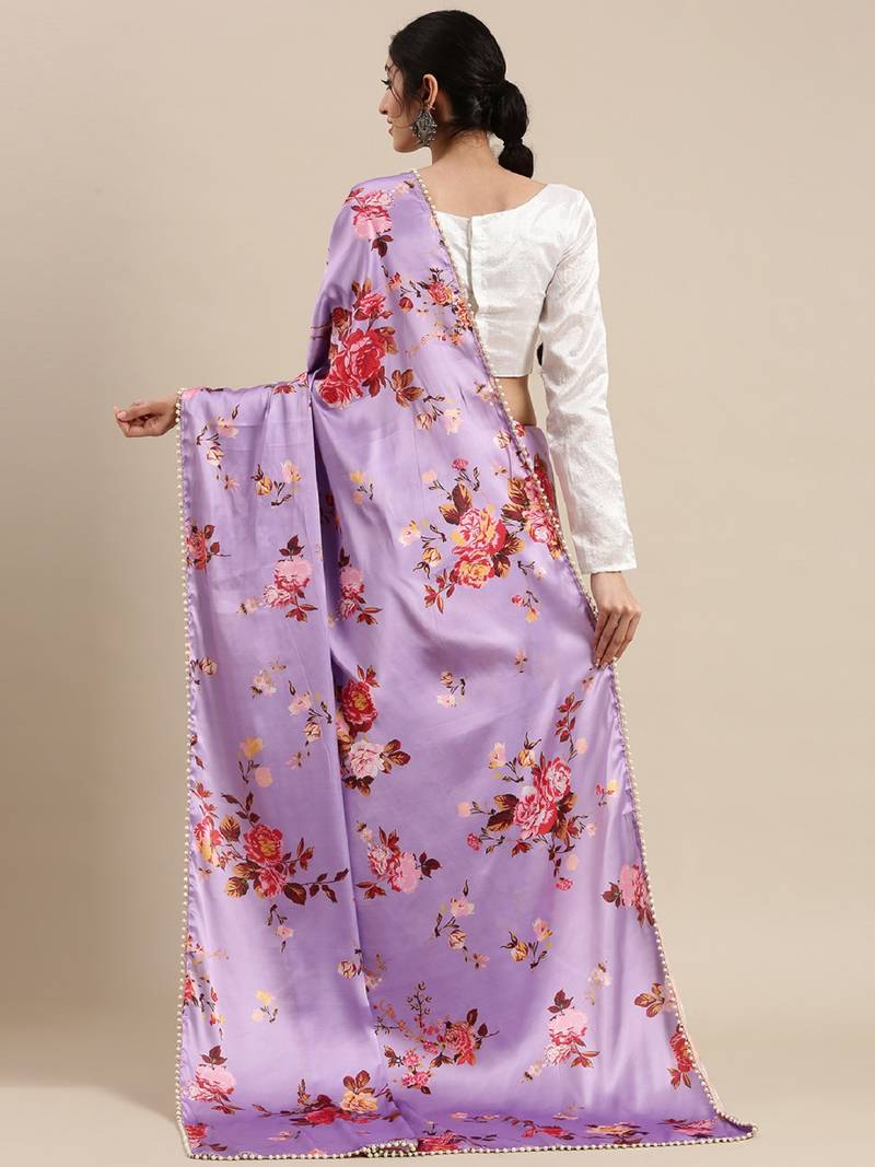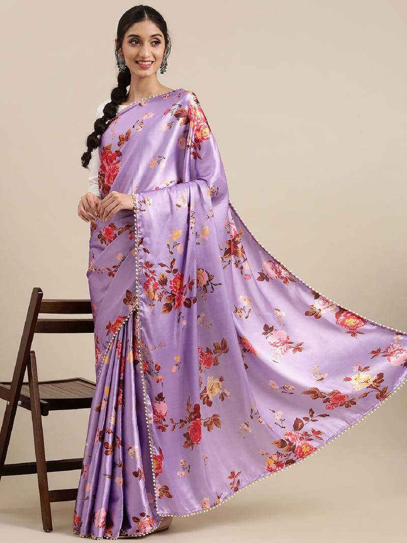 | Product Name | Lavender Color Heavy Japan Satin Printed With Pearl Lace Border Work Saree With Un Stitched Blouse | |