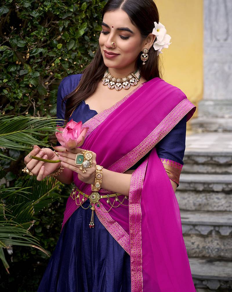 | Pattern | Circular Or Flared Pattern, Lehenga Choli, Half Saree, Zari Weaving Work, | |