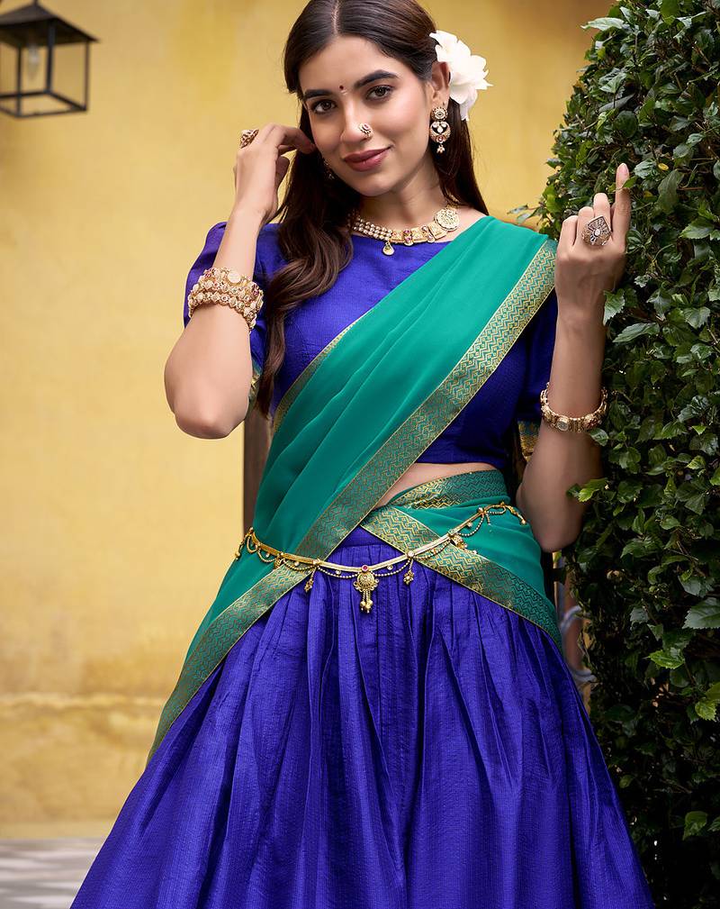 | Pattern | Circular Or Flared Pattern, Lehenga Choli, Half Saree, Zari Weaving Work, | |