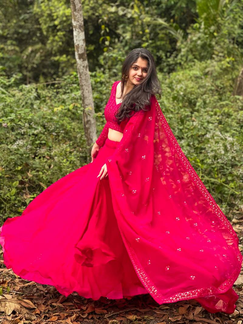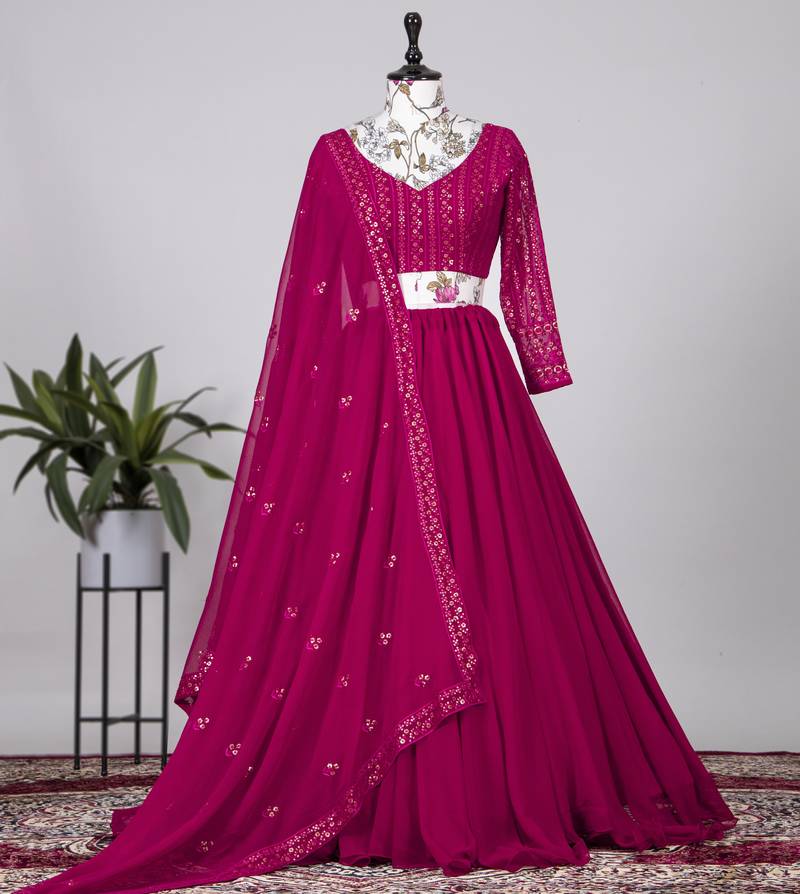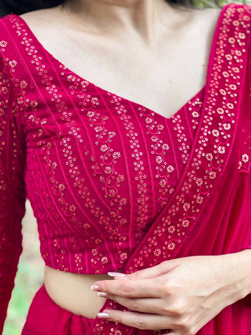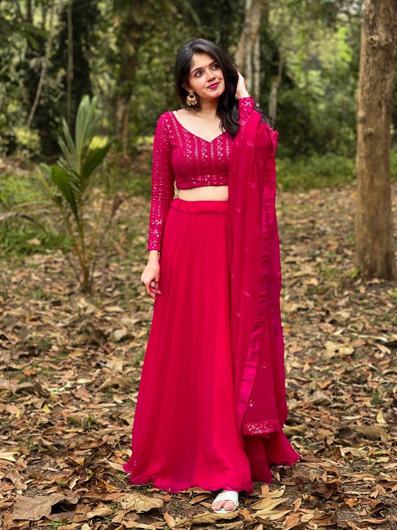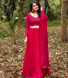 Rani pink colour plain georgette lehenga choli with dupatta