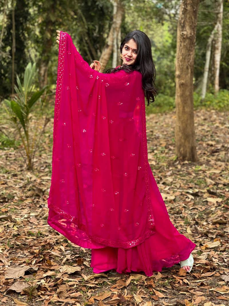 • | Dupatta | : | Color- Rani Pink / Fabric- Georgette |