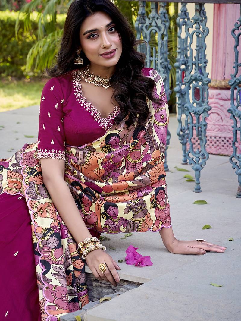 | Product Name | Raani Pink Charm In Vichitra Silk Sequins Embroidery With Kalamkari Border | |