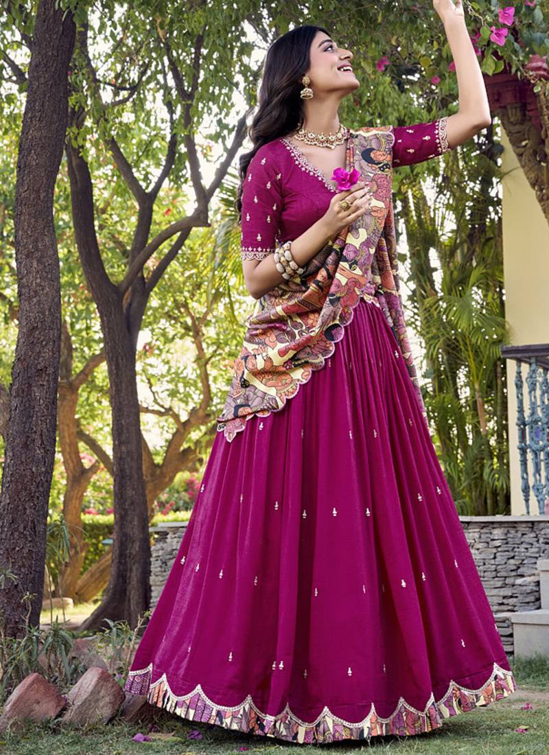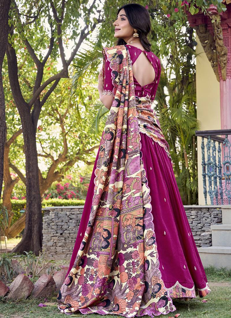 Raani pink charm in vichitra silk sequins embroidery with kalamkari border