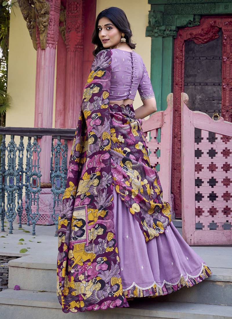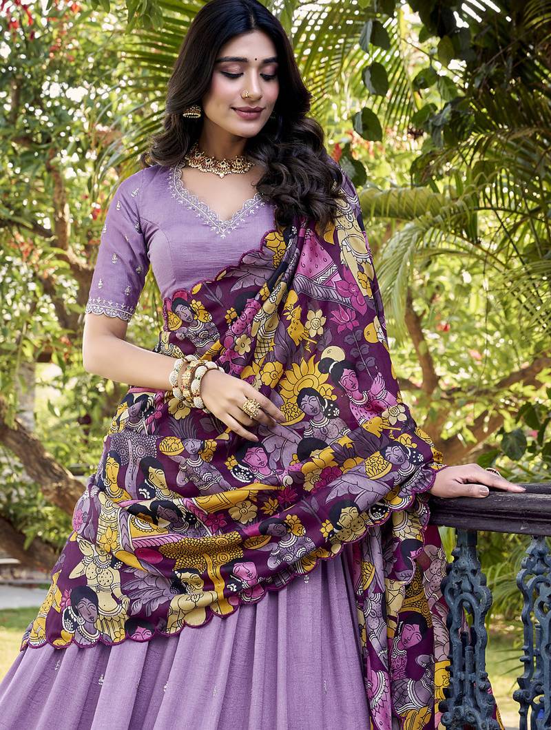 | Product Name | Lavender Charm In Vichitra Silk Sequins Embroidery With Kalamkari Border | |