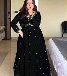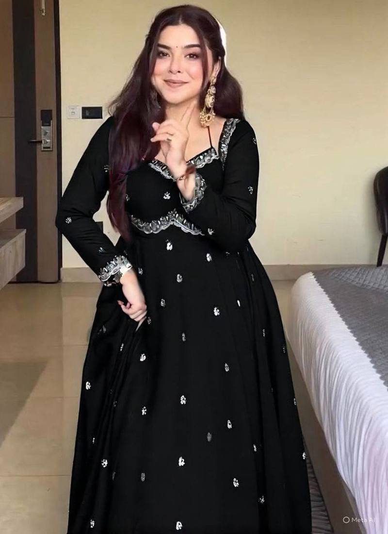 Black faux blooming embroidery party wear suit set stitched