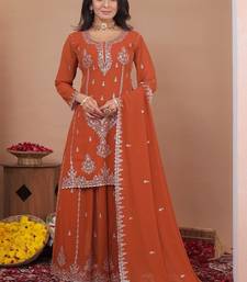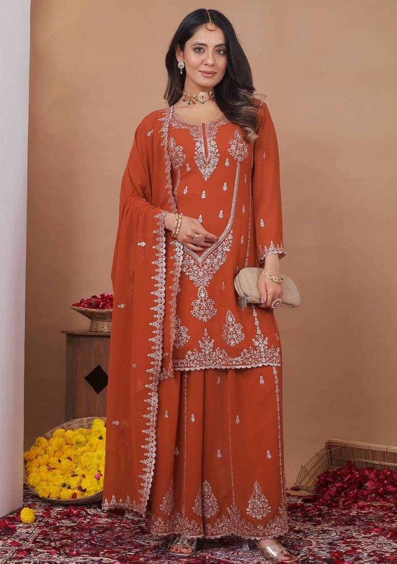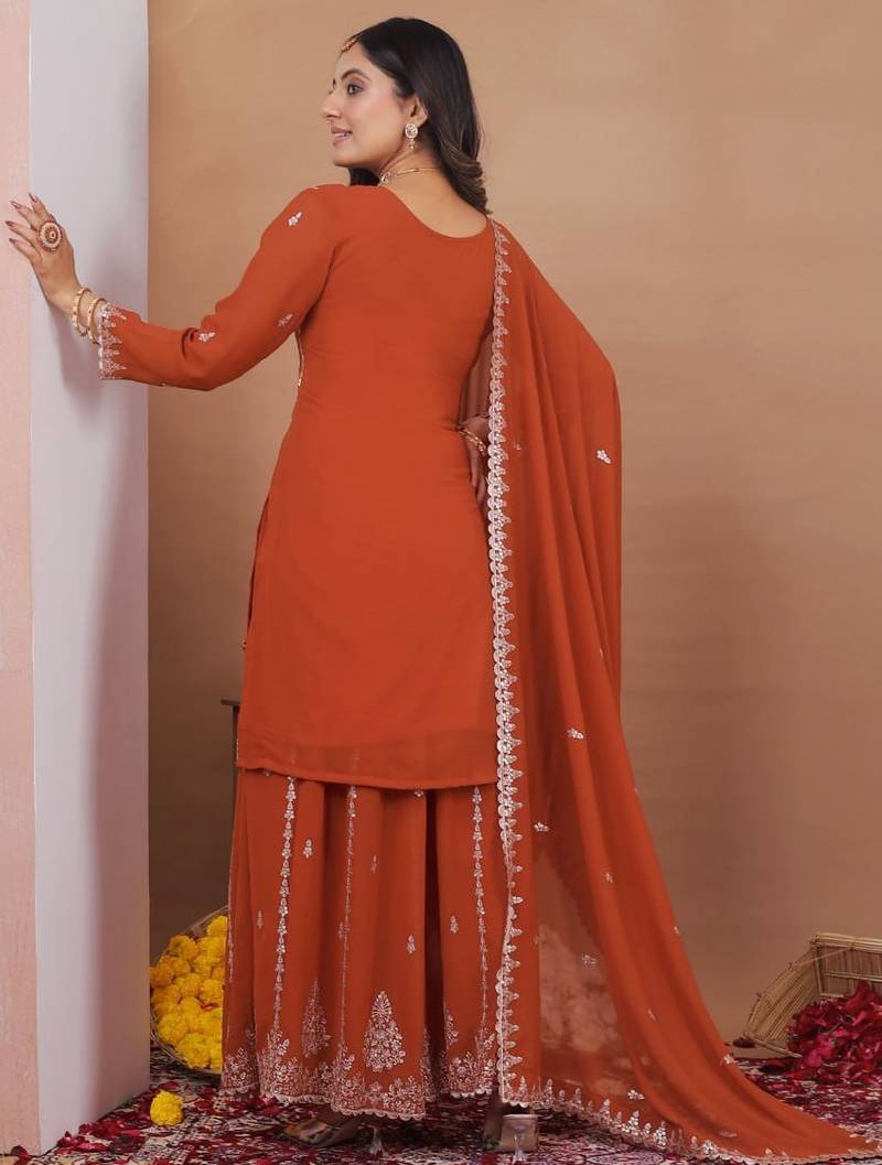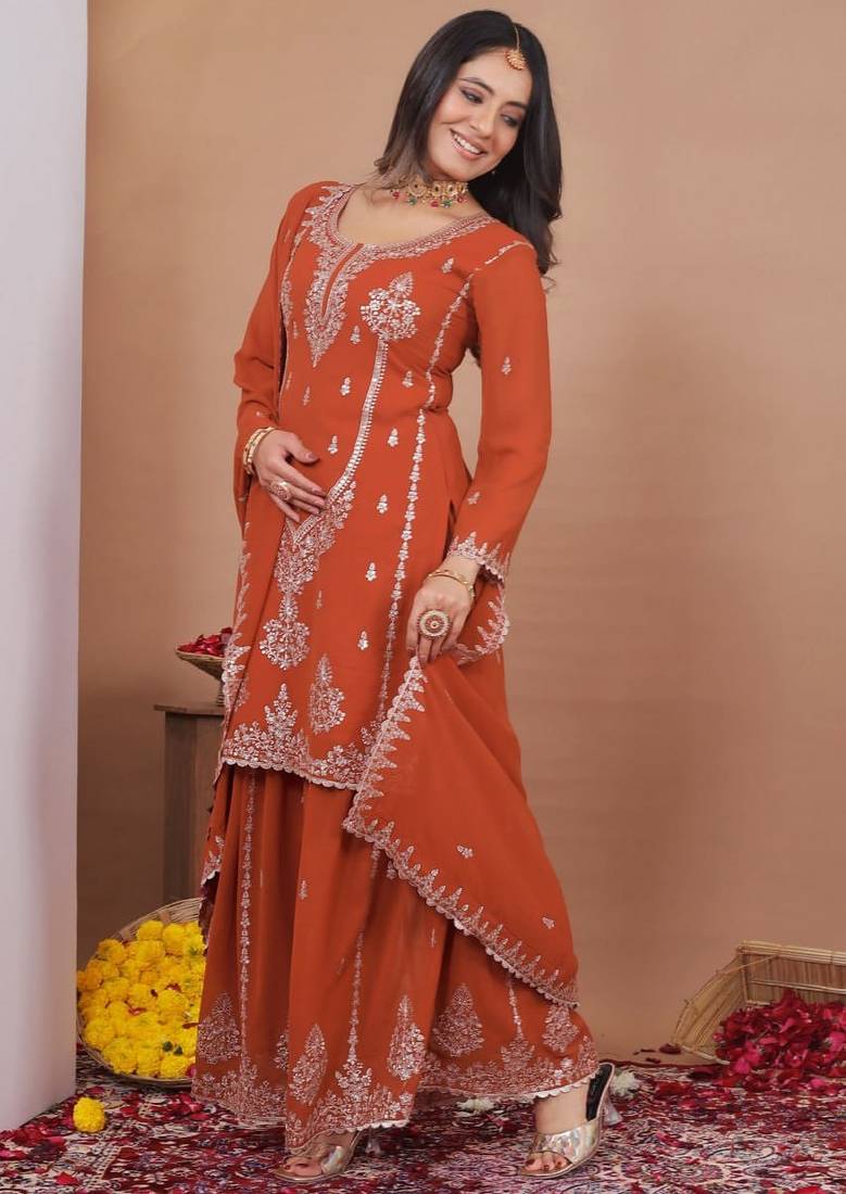 | Product Name | Orange Georgette Party Wear Embroidery Suit Set | |