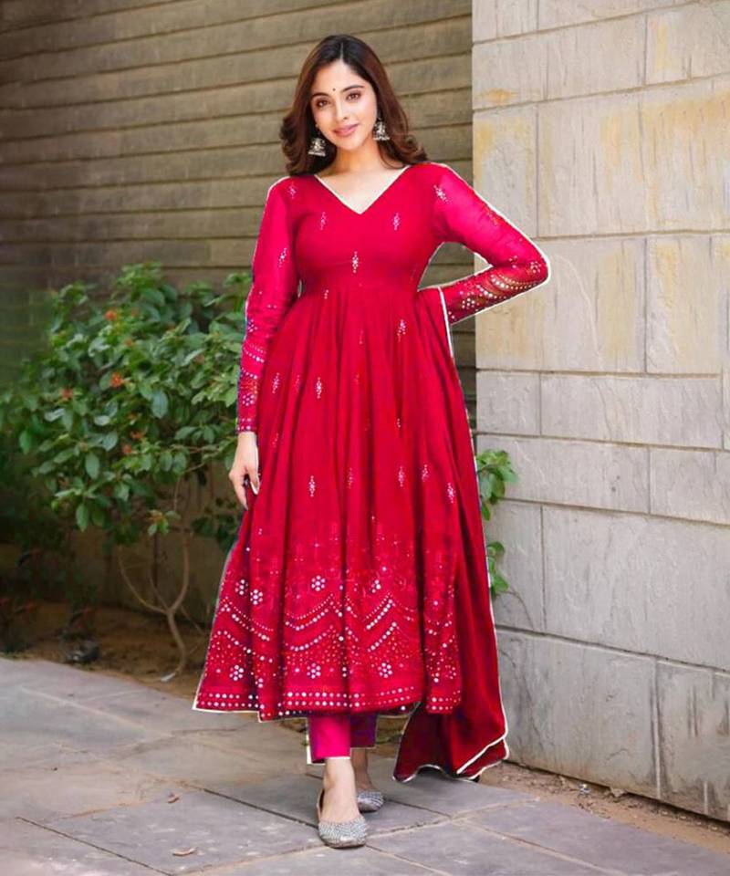 | Product Description | Add A Touch Of Elegance To Your Wardrobe With This Breeze Red Kurta Set. Made From Lightweight Georgette Fabric, The Embroidered Kurta Set Features Beautiful Embroidery That Enhances Its Charm. This Ready To Wear Georgette Kurta Suit Set Includes A Stylish Kurta, Matching Bottom, And A Lovely Dupatta, Making It Perfect For Festive Occasions And Gatherings. |