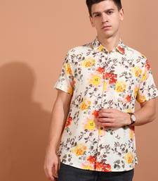 men's cotton floral printed short sleeve regular shirt