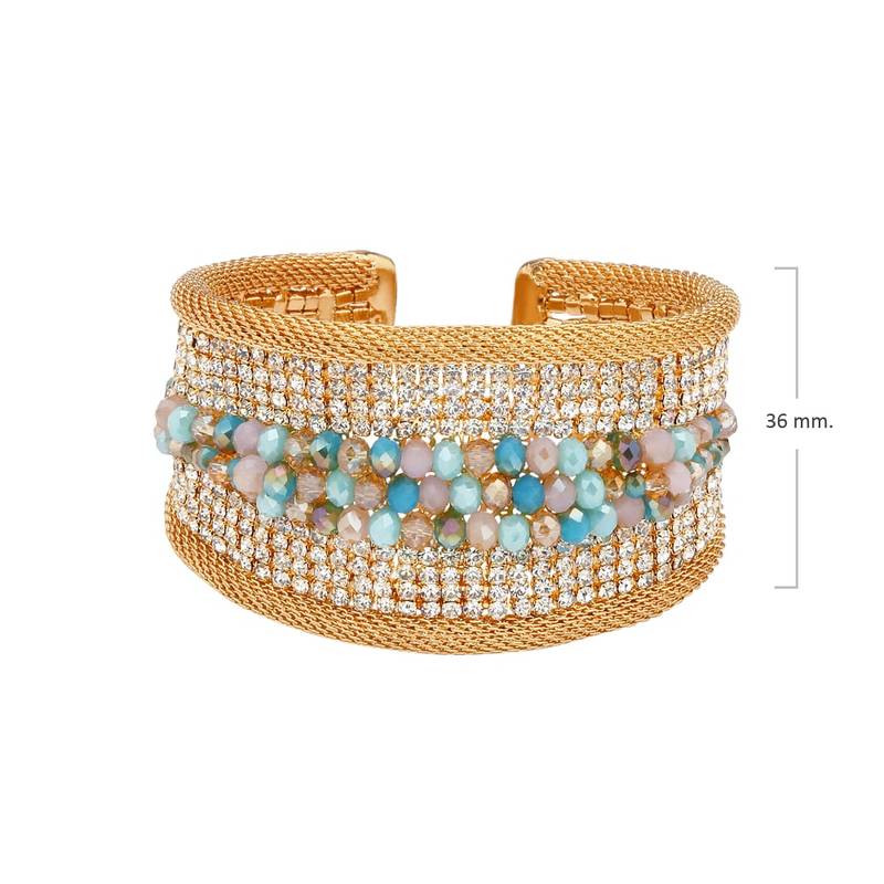 | Product Name | Natural Beads And Rhinestones Italian Designer Cuffs Aqua Beaded Golden Cuff | |