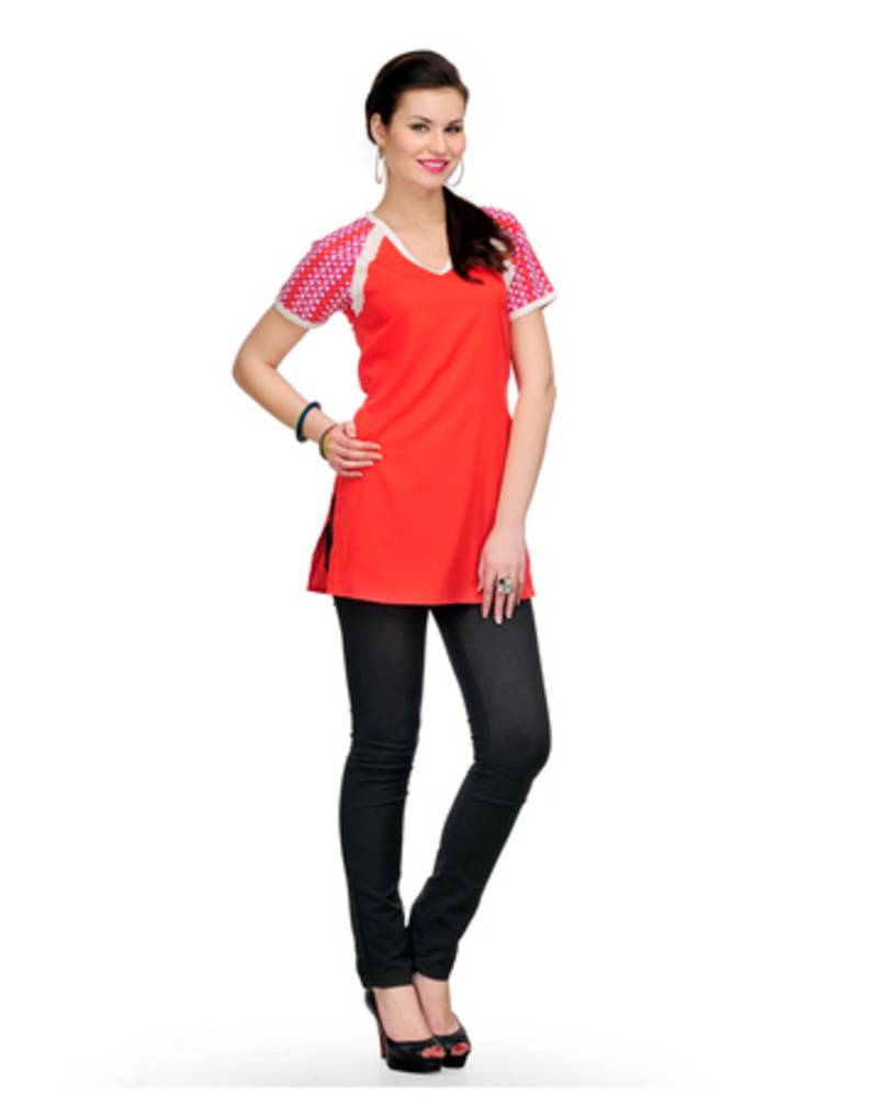 | Product Description | Product – Women''s Kurti Color – Orange Pattern And Fit Contrast Printed Kurti With Ecru Piping At Armhole And Sleeves Hem. Regular Fit Neck & Sleeves V Neck With Raglan Sleeves Fabric – Polyester & Crepe Care Machine/Hand Wash Style Tip Project Awesomeness By Pairing This With Yepme Leggings. |