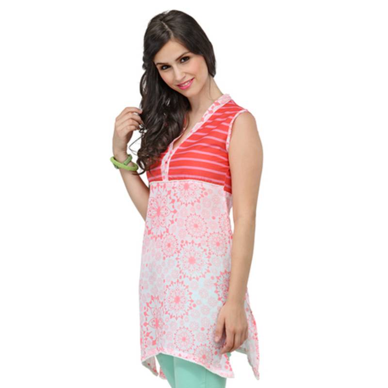 | Product Description | Product – Women's Striped Kurti Color – Orange Pattern & Fit – Orange Striped Print, Printed Collar With Notches, Lace Detail At Armholes And Asymmetric Bottom Hem With Regular Fit Collar & Sleeves – Band Collar And Sleeveless Fabric – Cotton Care Hand Wash And Reverse Ironing Style Tip Match It With A Pair Of Legging/Churidar And Accessorize With Ethnic Hints |