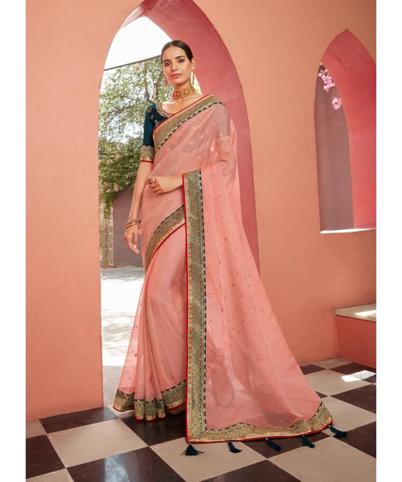 | Product Name | Sweet Pink Squin Embroidery Tassels Organza Silk Latest Fancy Saree With Blouse Piece | |