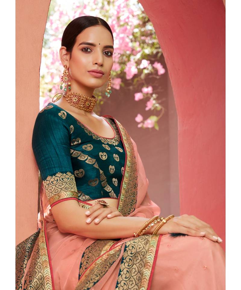 | • | Saree | : | Color- Pink / Fabric- Organza |
