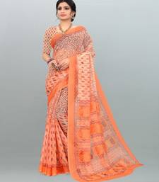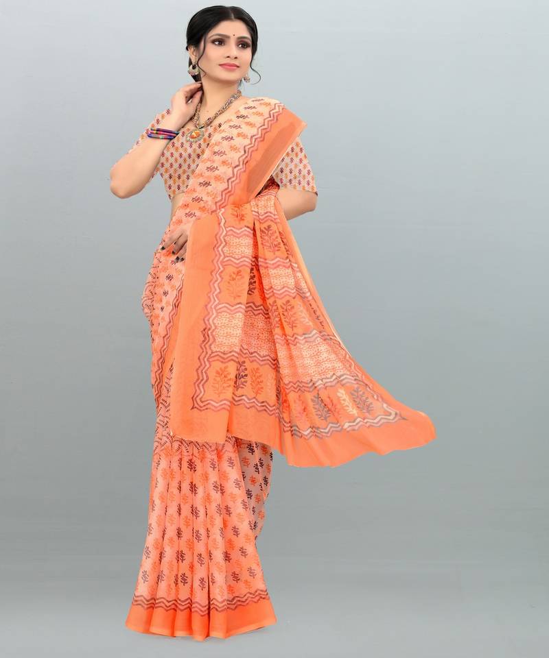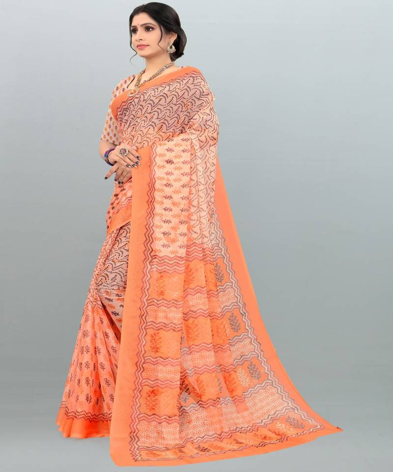Glorious light orange & light peach colour printed saree with blouse