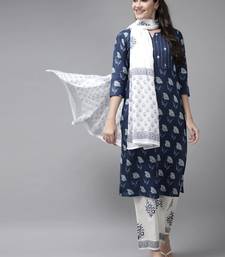 | Product Name | Yufta Blue & White Ethnic Motifs Printed Mirror Work Kurta With Palazzos & Dupatta | |