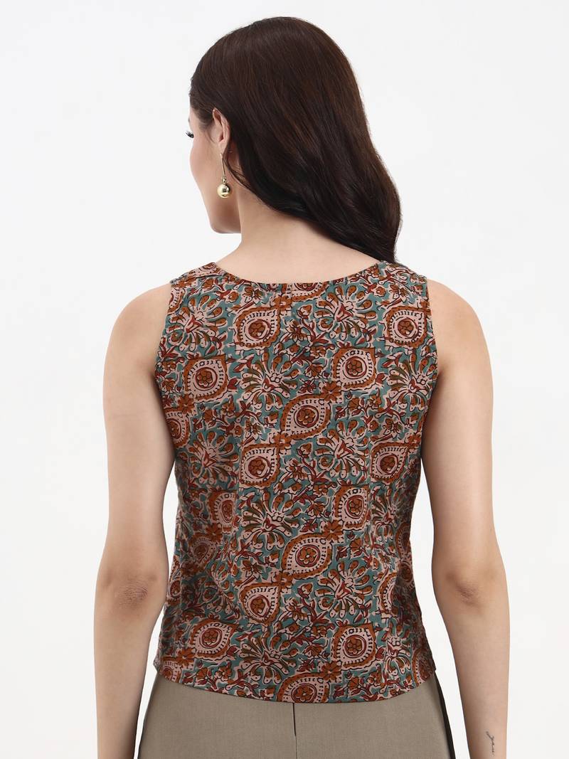 Product Name | Brown And Turquoise Blue Cotton Sleeveless Crop Top | |