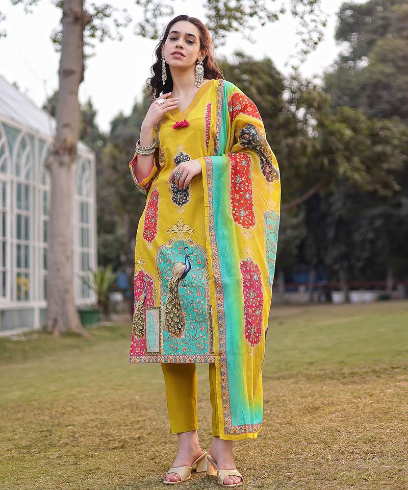 | Product Name | Cotton Lime Green Straight Pakistani Kurta Trouser Dupatta Set | |