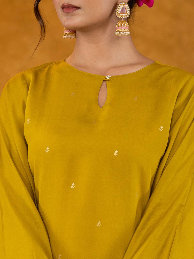 • | Bottom | : | Color- Mehendi / Fabric- Silk |