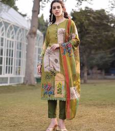 Green pure cotton sequins work piping pakistani style kurta trouser dupatta set