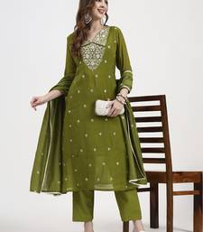 | Product Name | Lime Green Mul Chanderi Thread Work Sequins Work A Line Kurta Trouser Dupatta Set | |