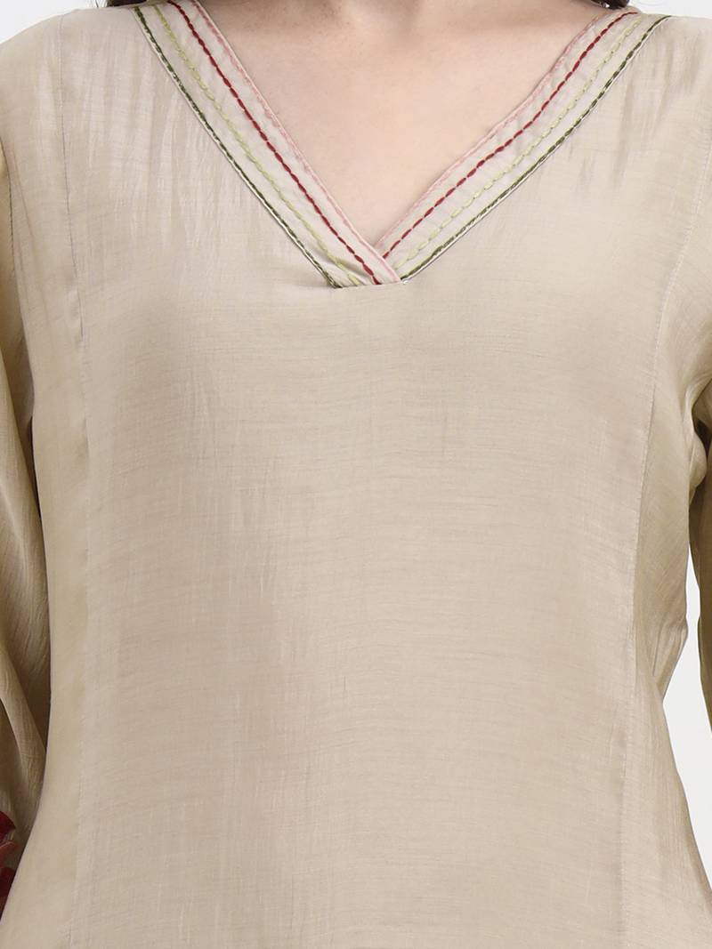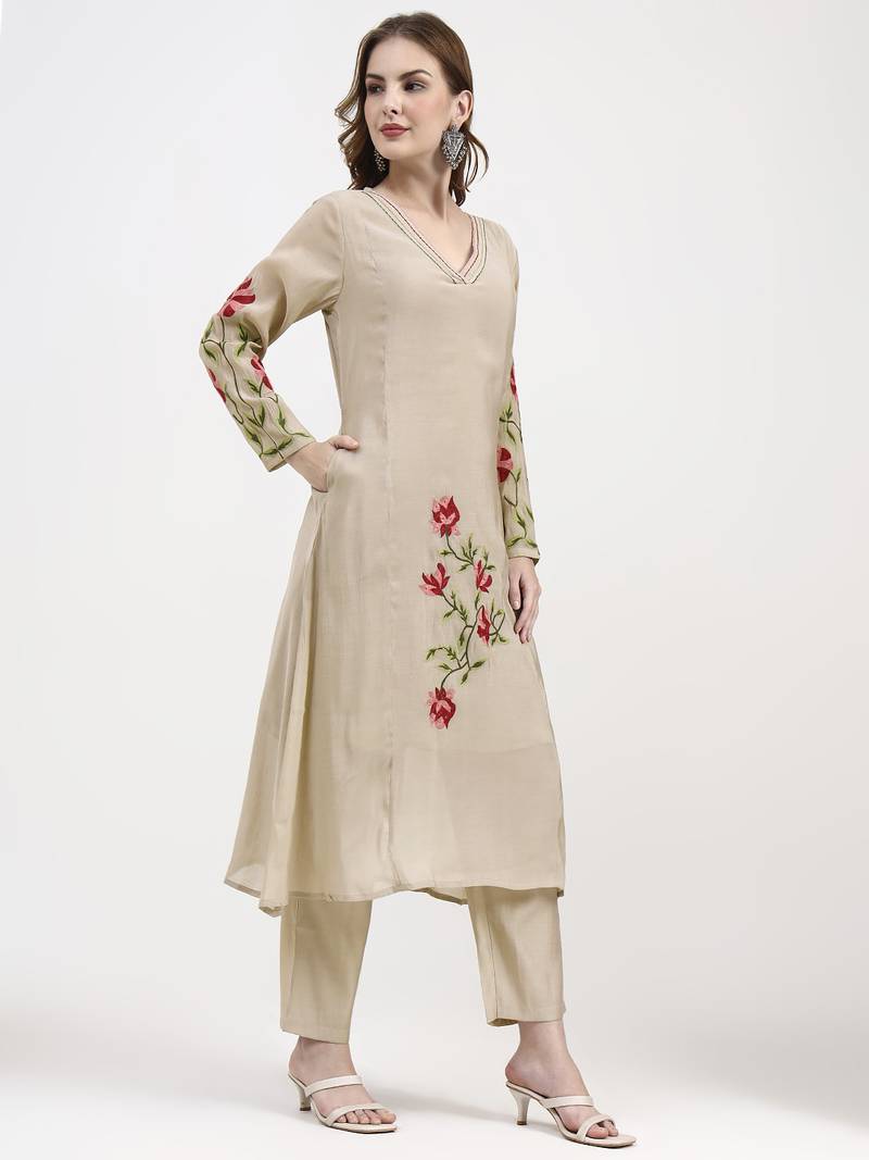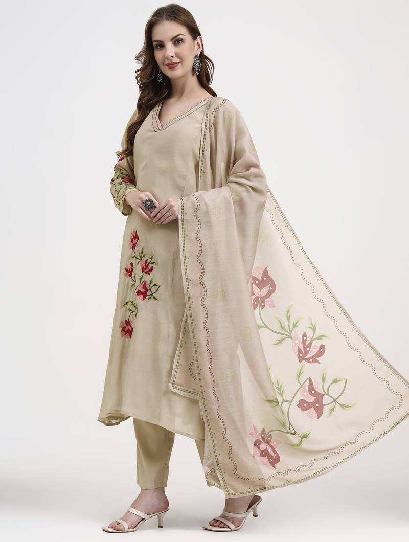 | Product Name | Yufta Mul Chanderi Beige Kurta Dupatta Pant Set | |