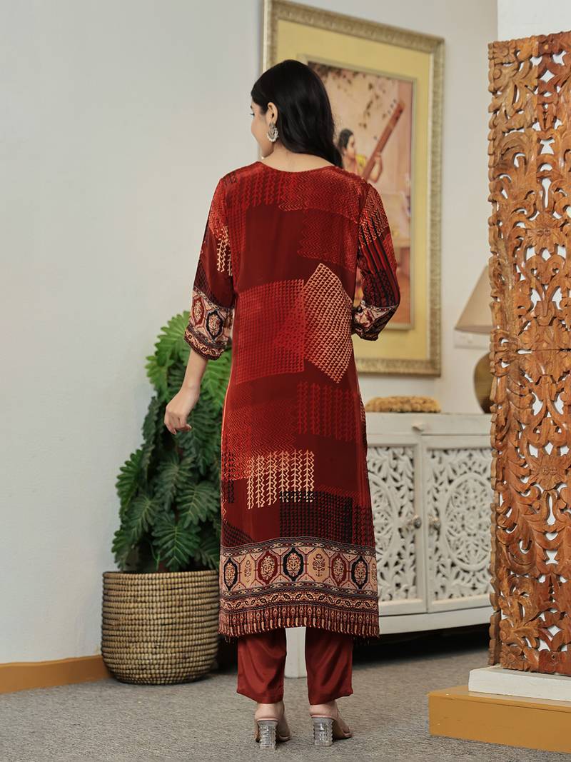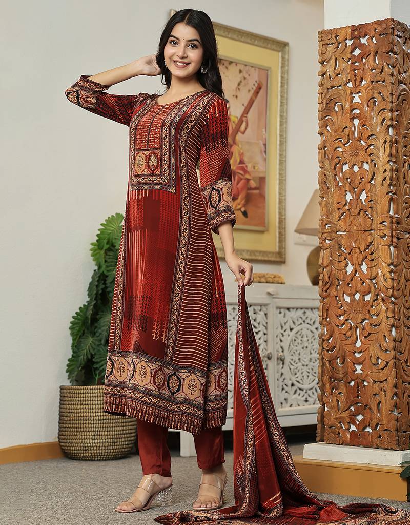 Product Name | Yufta Natural Crepe Maroon Kurta Dupatta Pant Set | |