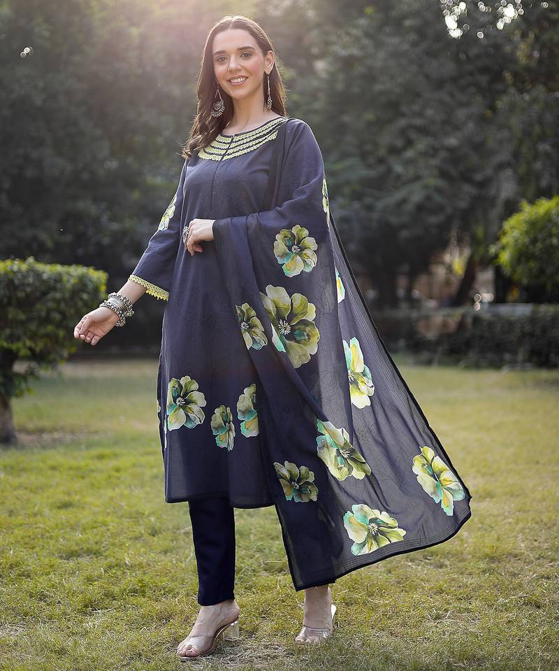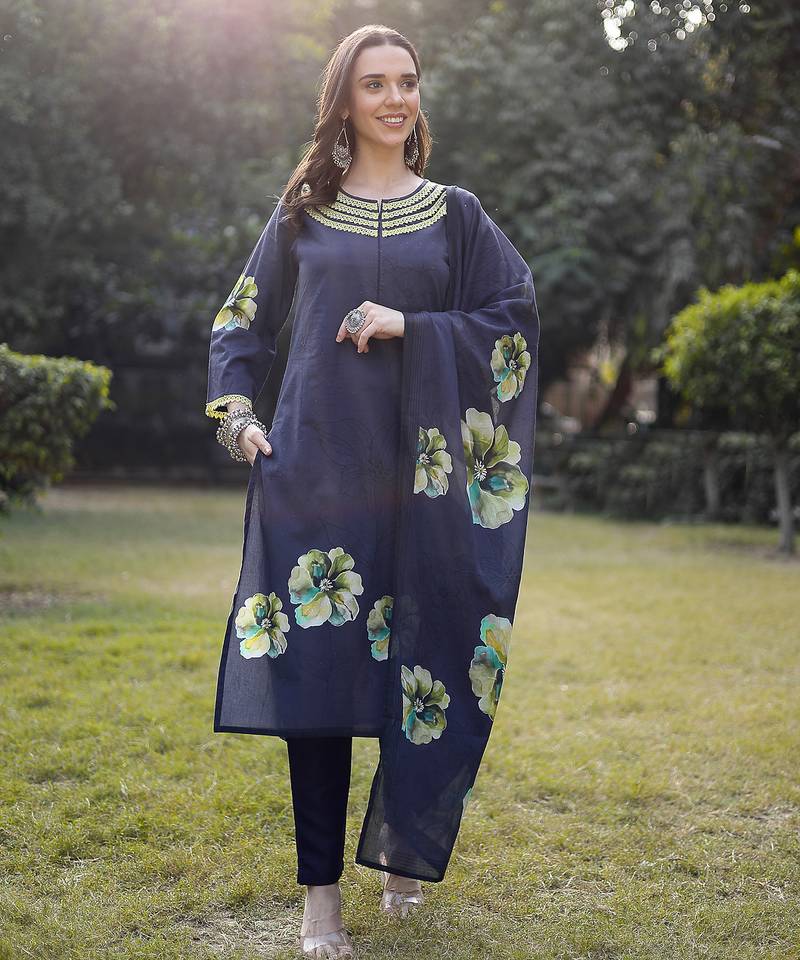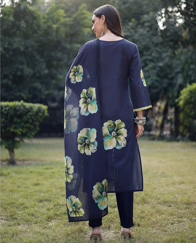 | Product Name | Navy Blue Cotton Straight Pakistani Kurta Trouser Dupatta Set | |
