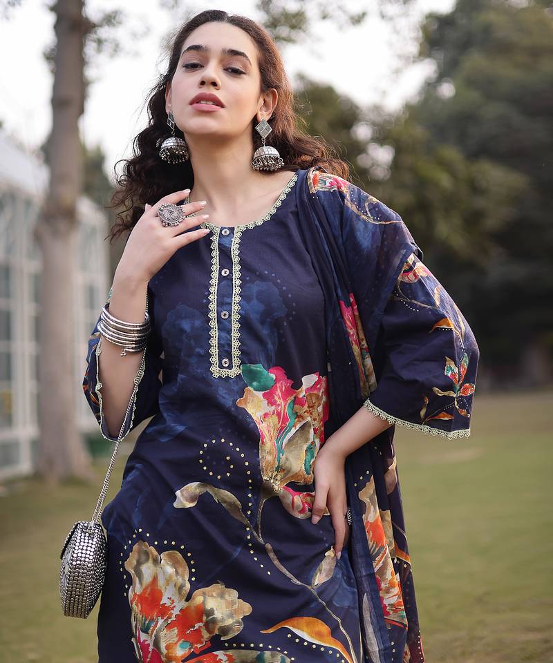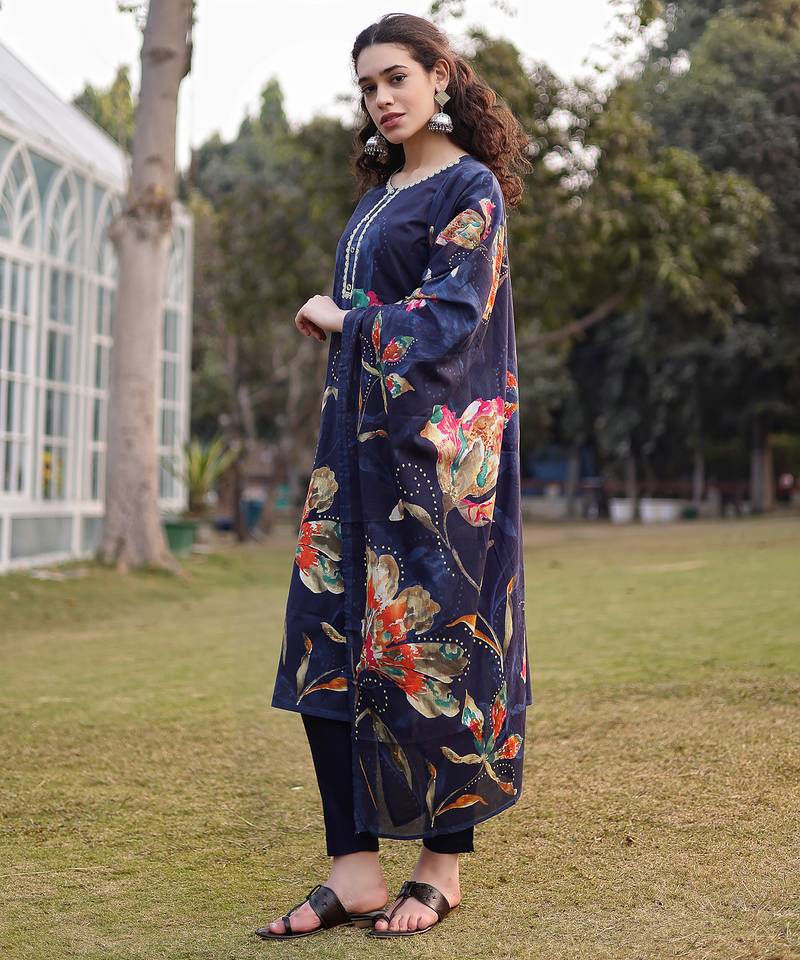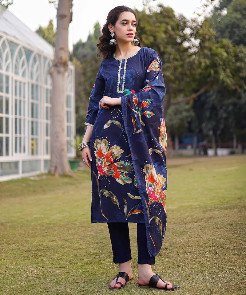 | Product Name | Navy Blue Pure Cotton Pakistani Straight Kurta Dupatta Pant Set | |