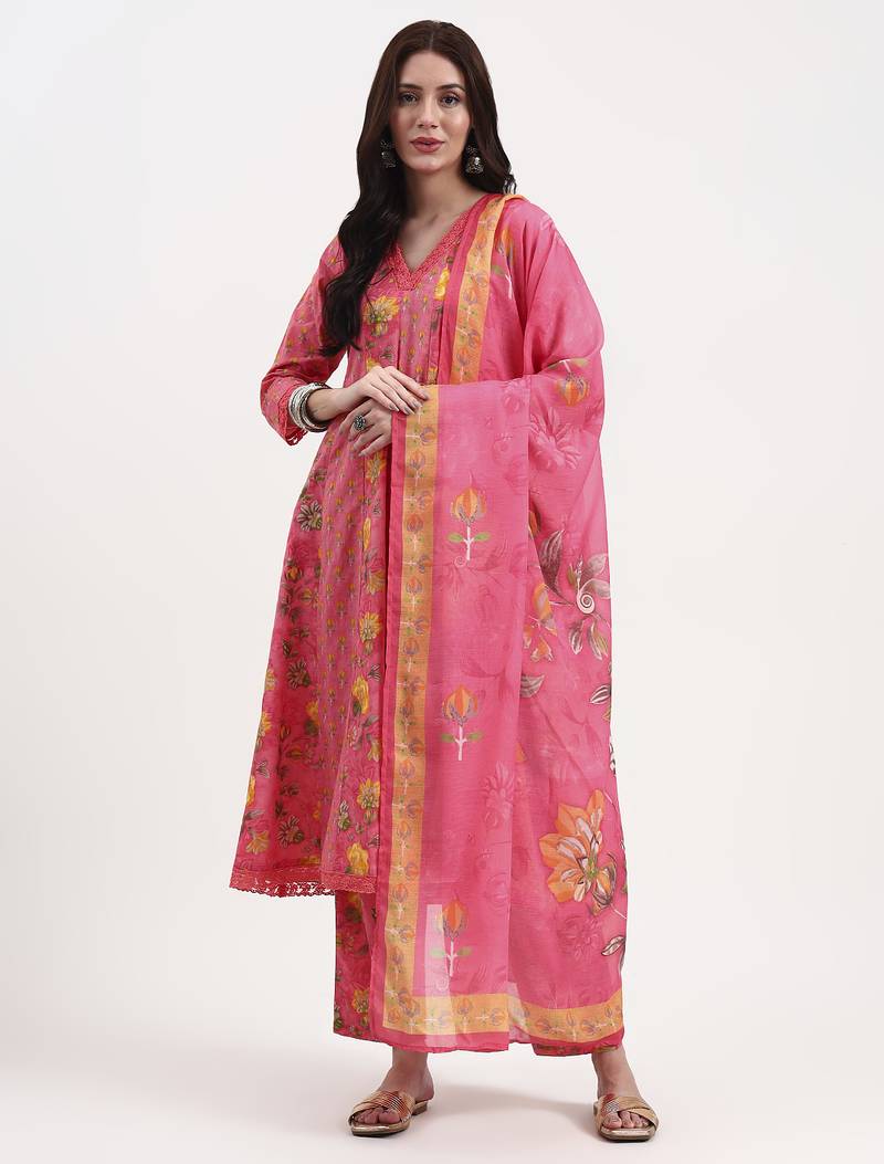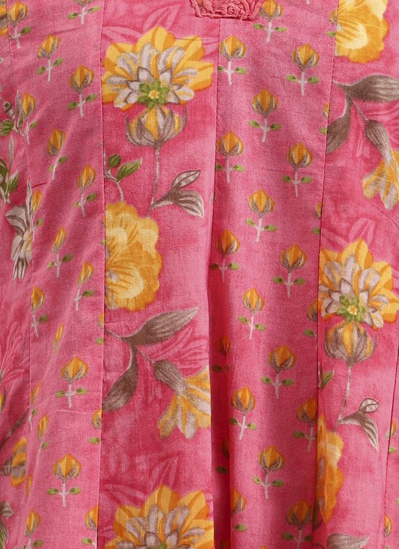 Product Name | Yufta Pink Floral Print Cotton Anarkali Kurta Trouser Dupatta Set One Pocket Kurta | |