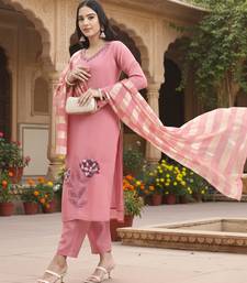 | Product Name | Yufta Pink Solid Straight Style Chanderi Silk Lining Kurta Trouser Dupatta Set | |