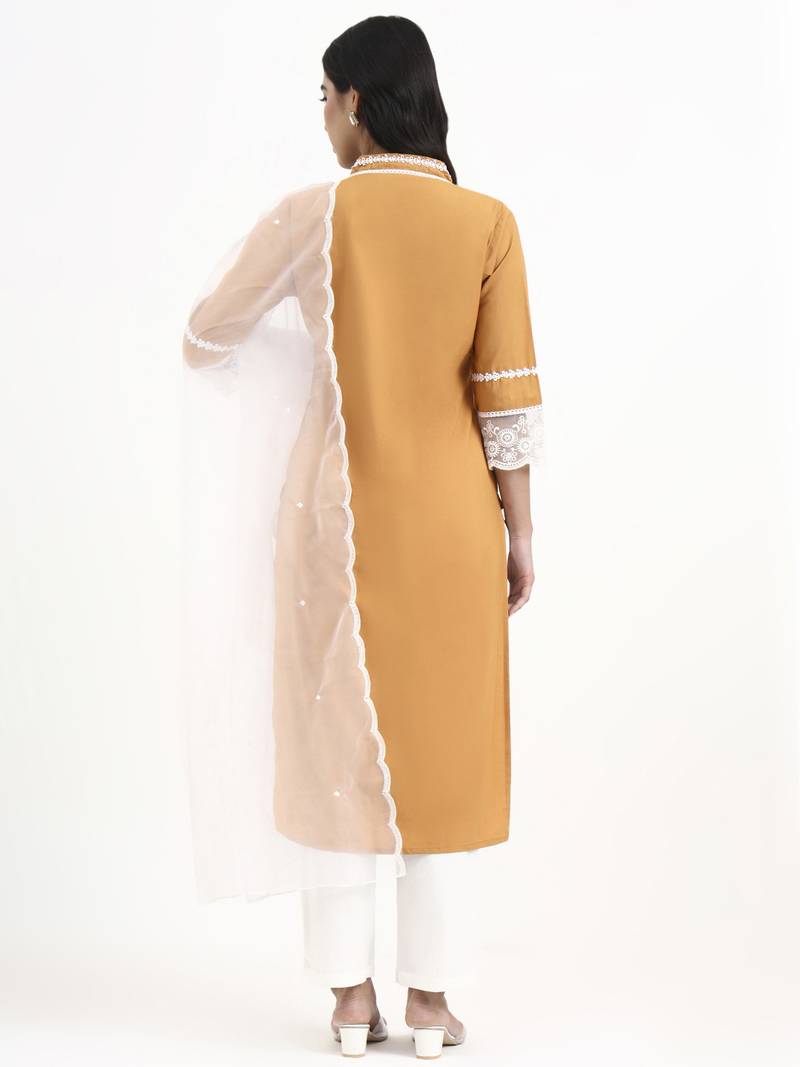 | Product Name | Yufta Premium Cotton Poplin Bronze Kurta Dupatta Pant Set | |