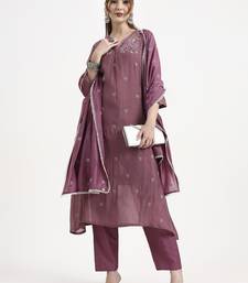 | Product Name | Purple Chanderi Silk Kantha Work Anarkali Kurta Trouser Dupatta Set | |