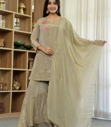 Product Name | Yufta Tissue Green Beads And Stones Sequins Work Kurta Dupatta Set With Divider Palazzo Set | |