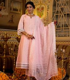 Yufta women pink pure cotton sequence work anarkali kurta trouser with dupatta set