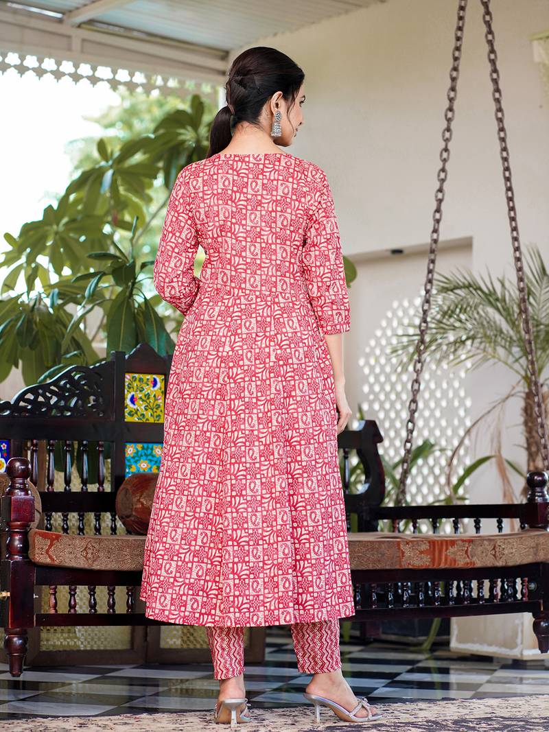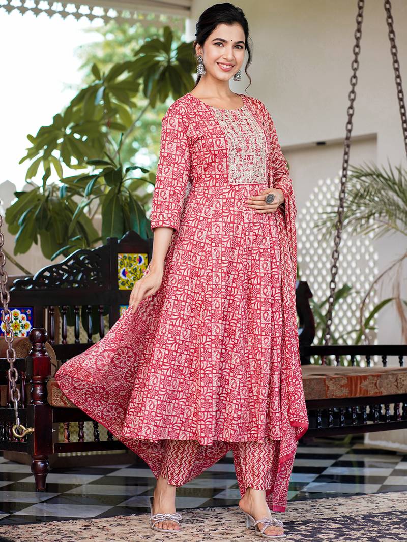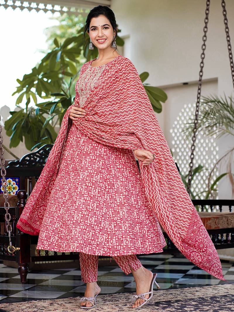 | Product Name | Yufta Women Red Pure Cotton Anarkali Trouser And Dupatta Set | |