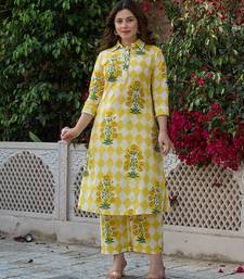 | Product Description | Yellow And White Floral And Geometric Straight Button Yoke Design Kurta Trouser Set Kurta Design Straight Shape Side Slits Three Quarter Regular Sleeves Shirt Collar Calf Length Kurta Flared Him Machine Weave Pure Cotton Trouser Design: Yellow Printed Trouser Elastic Waist Size & Fit Material & Care Pure Cotton Dry Clean |