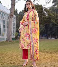 | Product Name | Yellow Floral Print Lensing Straight Kurta Trouser Dupatta Set | |