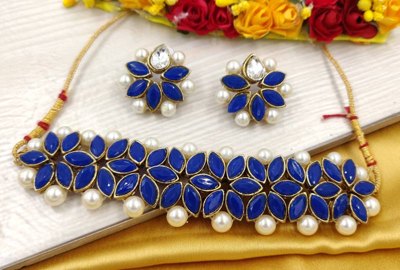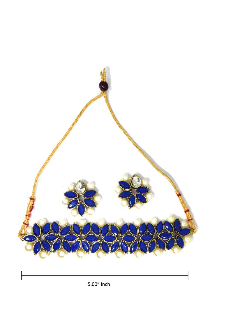 | Product Description | Zaffre Collections Navy Blue Crystal Flower Choker With Earrings For Women & Girls |