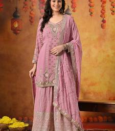 Pink georgette embroidered gharara set stitched