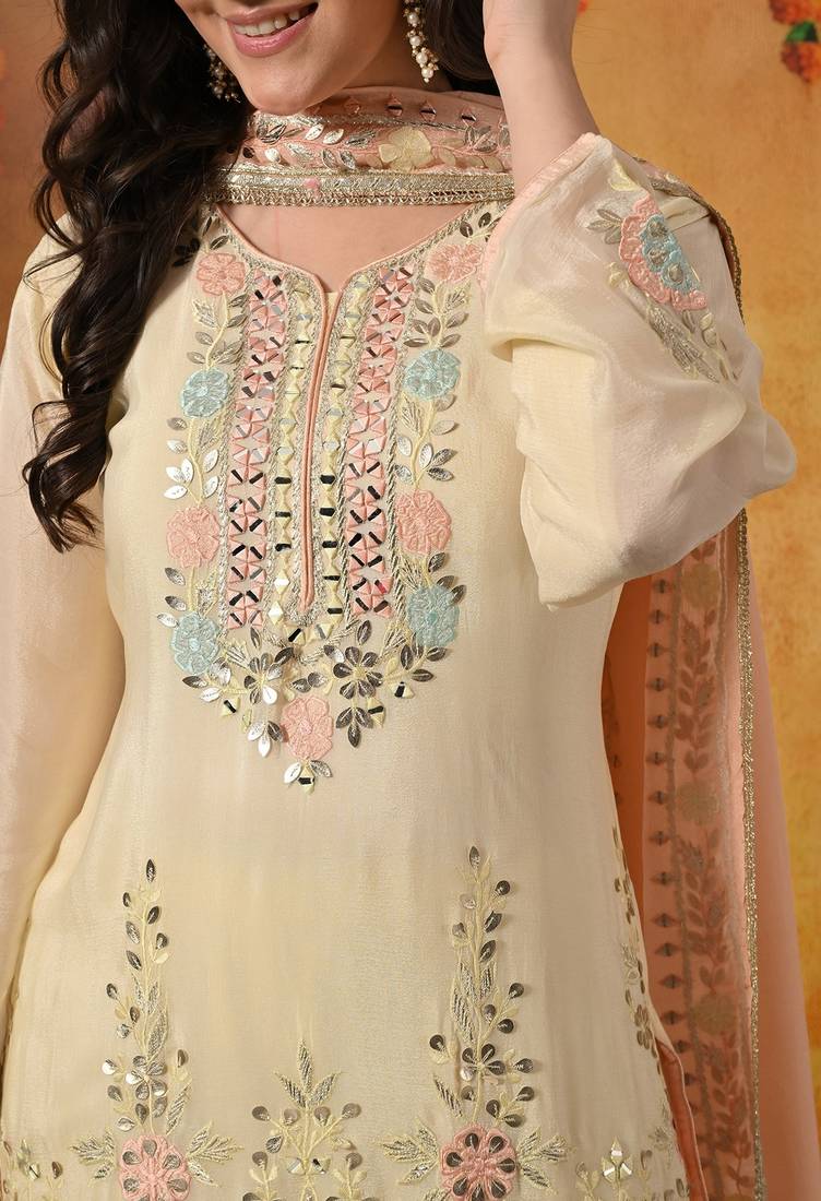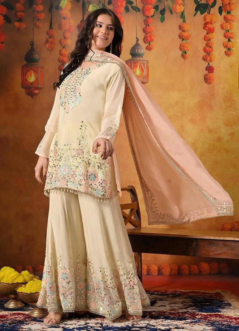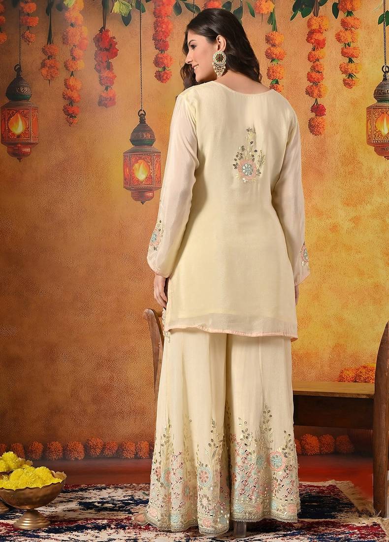 | Product Description | This Charming Light Yellow Sharara Set Is Designed To Capture The Joyful Spirit Of Festive Celebrations. Crafted In Soft And Flowy Chinon Fabric, The Ensemble Features A Beautifully Tailored Kurti, Flared Sharara, And A Contrasting Peach Dupatta, Creating A Fresh And Graceful Ethnic Look. |
