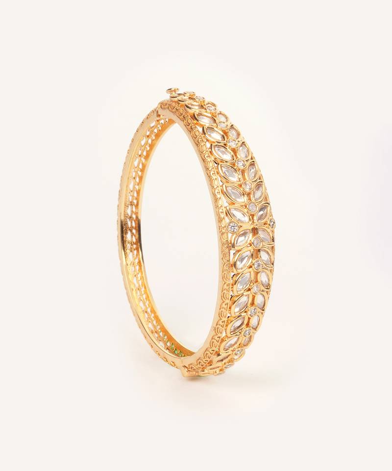 Product Description | Elegant Openable Bangle Featuring A Graceful Arrangement Of Kundan Stones In Gold Finish. Adding A Touch Of Artisanal Charm, It Is Ideal For Weddings And Grand Celebrations.